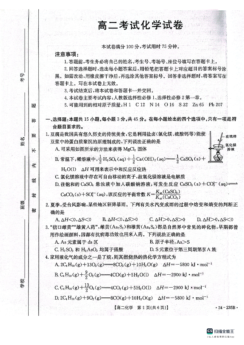 辽宁省辽阳市2023-2024学年高二上学期1月期末考试化学
