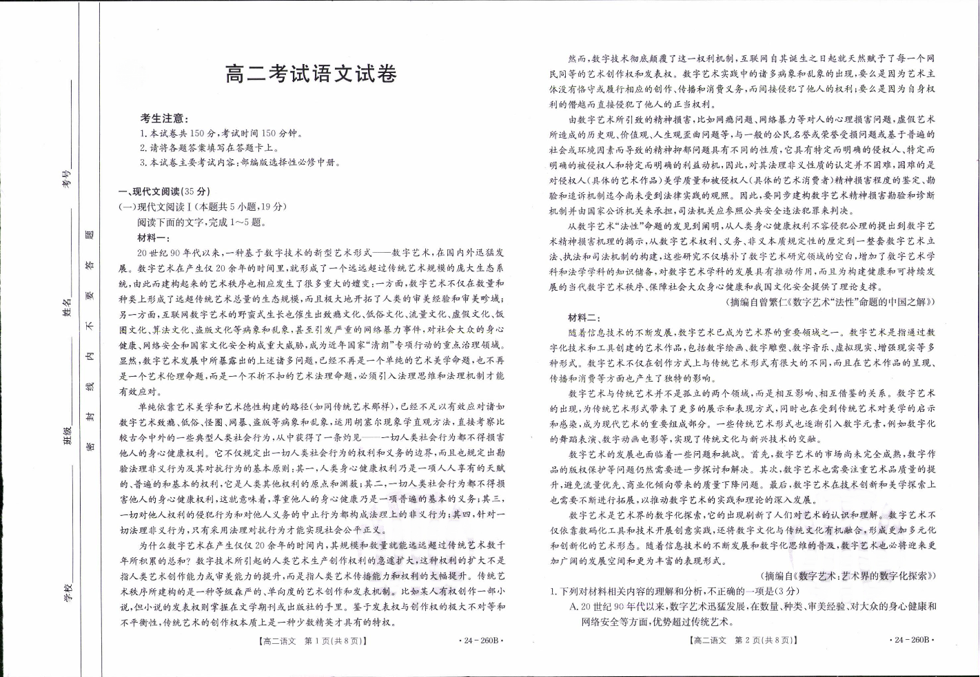 辽宁省县级重点高中协作体2023-2024学年高二上学期末考试语文