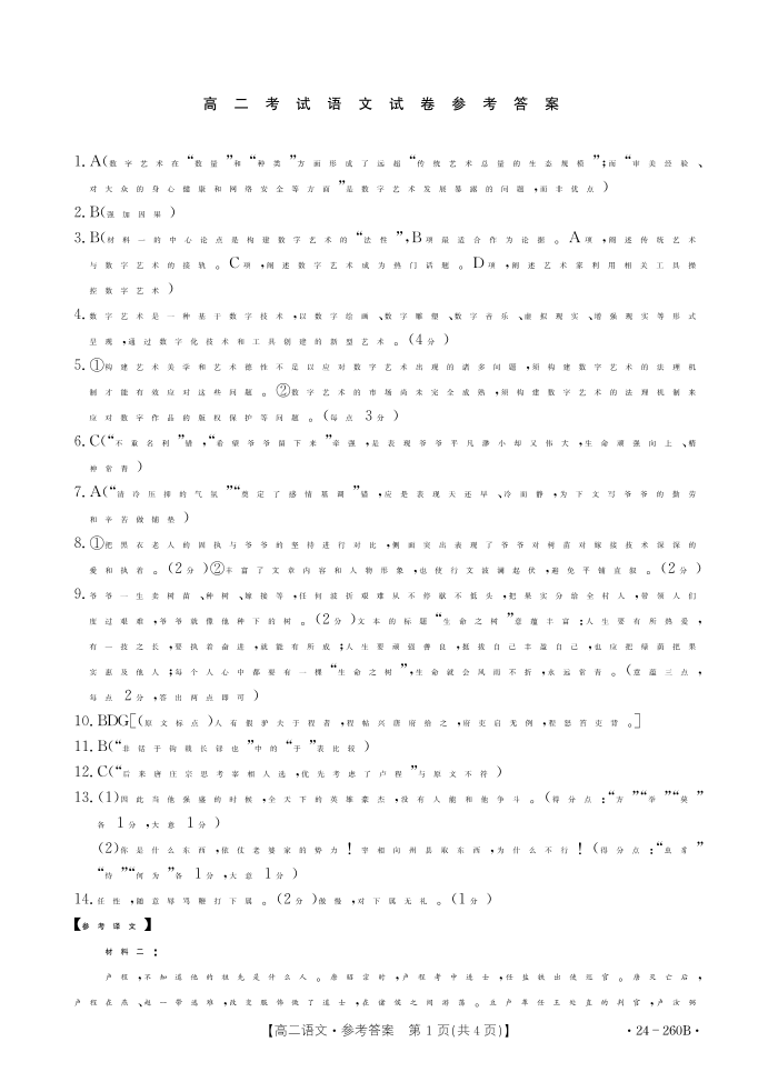 辽宁省县级重点高中协作体2023-2024学年高二上学期末考试语文答案