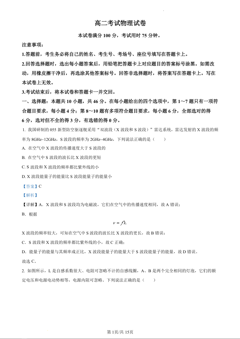 辽宁省县级重点高中协作体2023-2024学年高二上学期末考试物理(精品解析版)