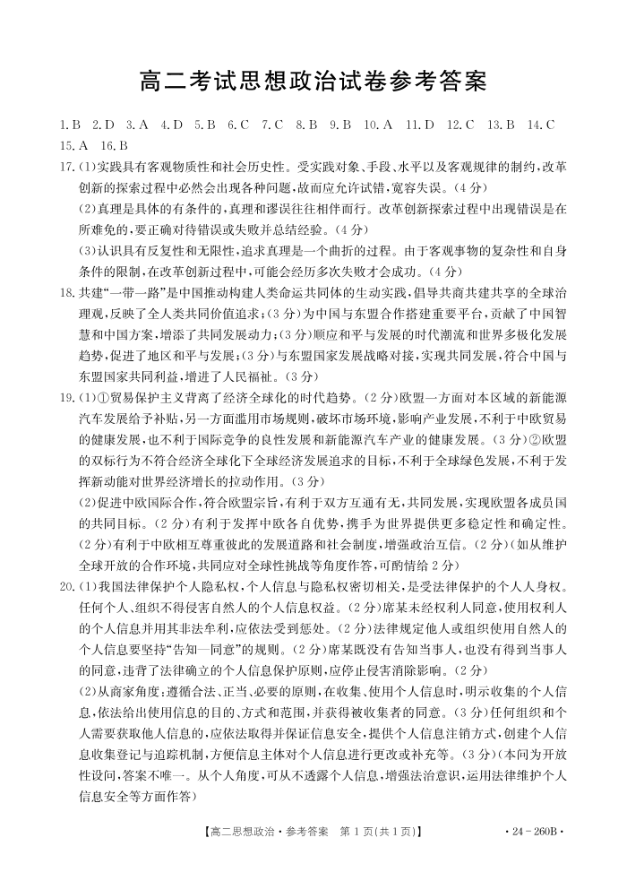 辽宁省县级重点高中协作体2023-2024学年高二上学期末考试政治答案