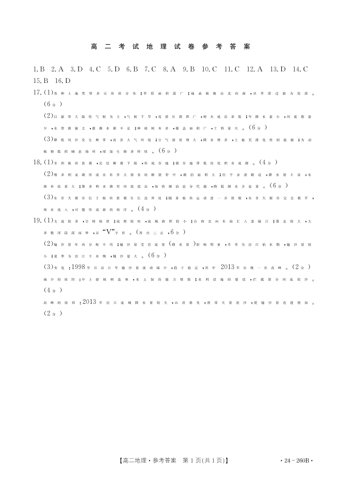 辽宁省县级重点高中协作体2023-2024学年高二上学期末考试地理答案