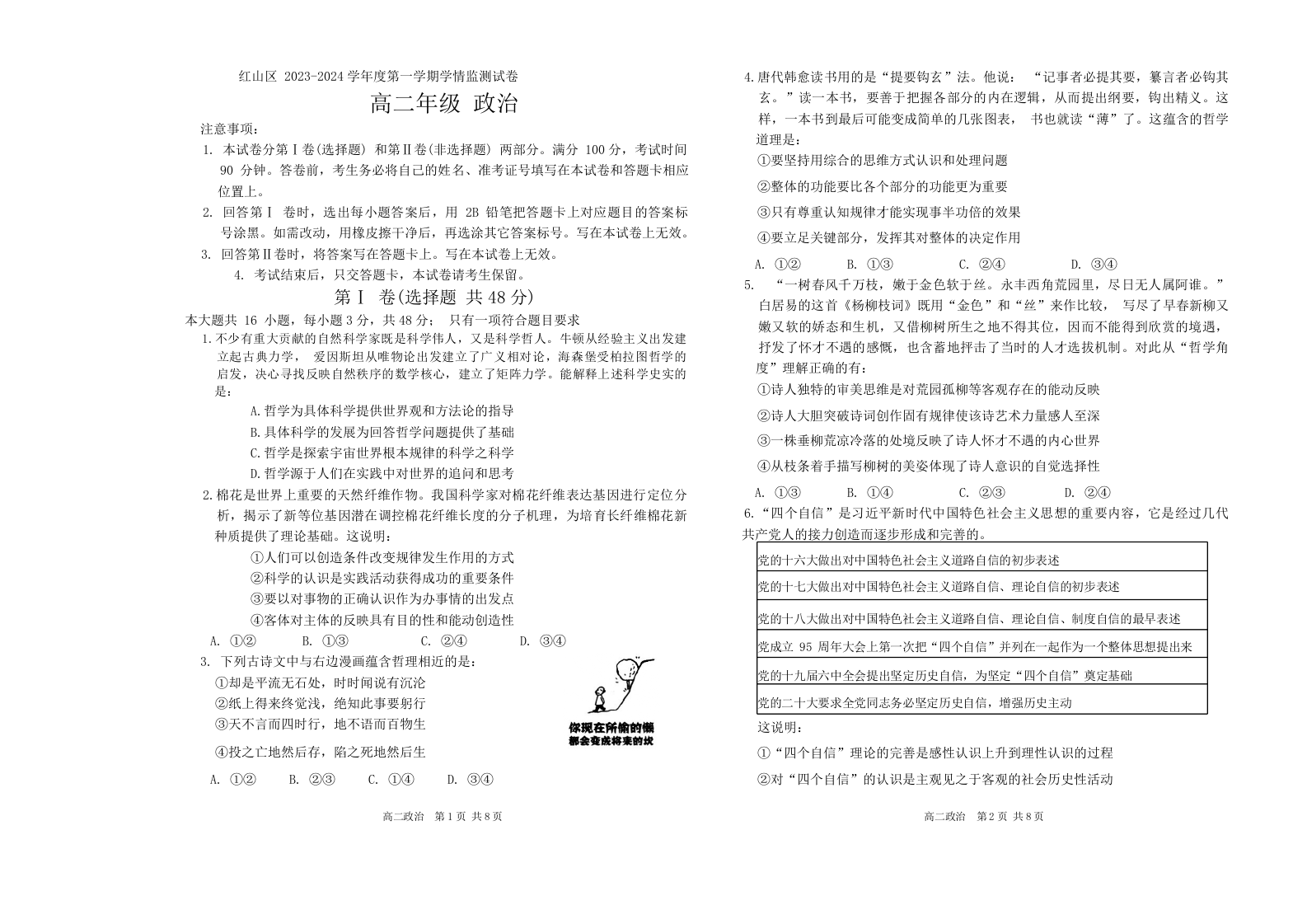 内蒙古赤峰市红山区2023-2024学年高二上学期1月期末考试政治+答案