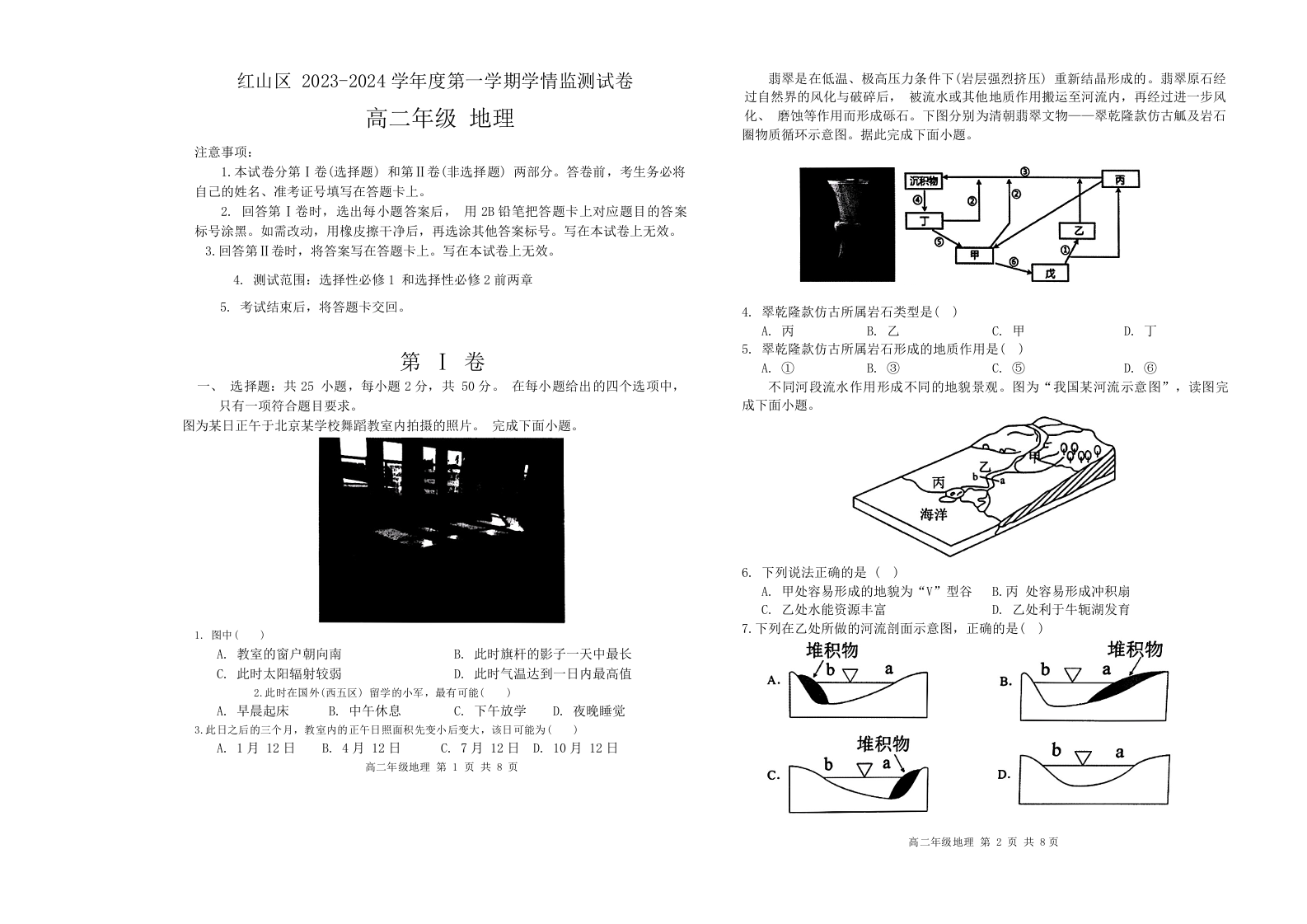 内蒙古赤峰市红山区2023-2024学年高二上学期1月期末考试地理+答案