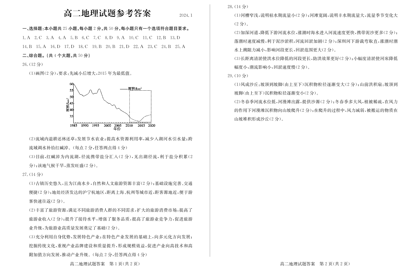 山东省滨州市2023-2024学年高二上学期1月期末考试地理答案