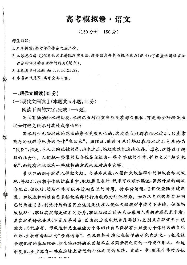 甘肃省区域2024-2025学年下学期高三高考模拟考试语文