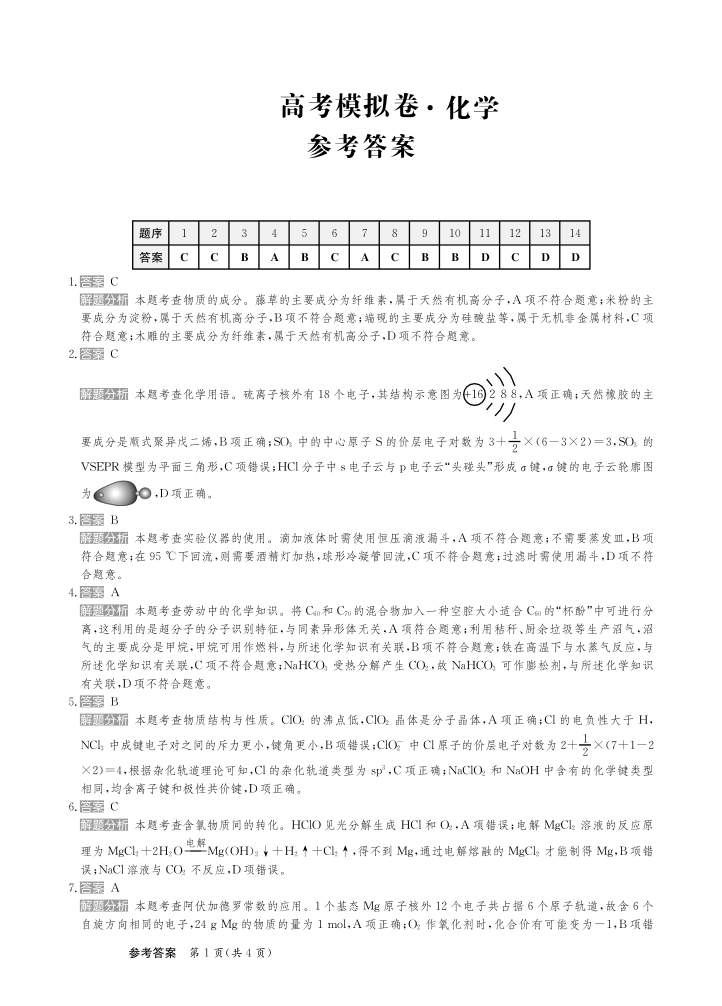 甘肃省区域2024-2025学年下学期高三高考模拟考试化学答案