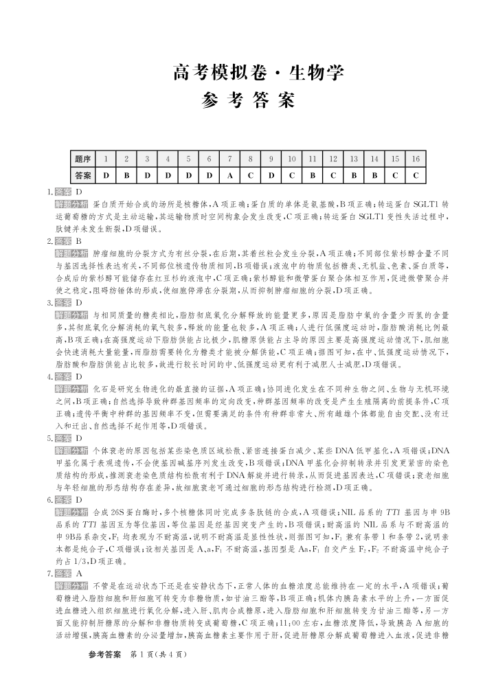 甘肃省区域2024-2025学年下学期高三高考模拟考试生物答案