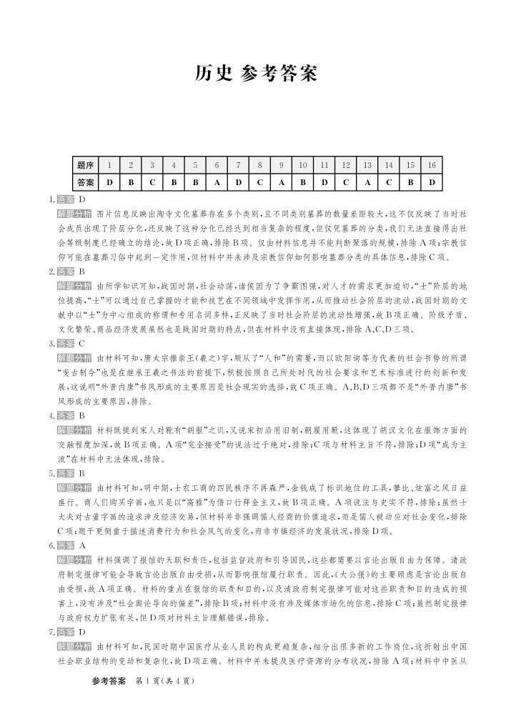 甘肃省区域2024-2025学年下学期高三高考模拟考试历史答案