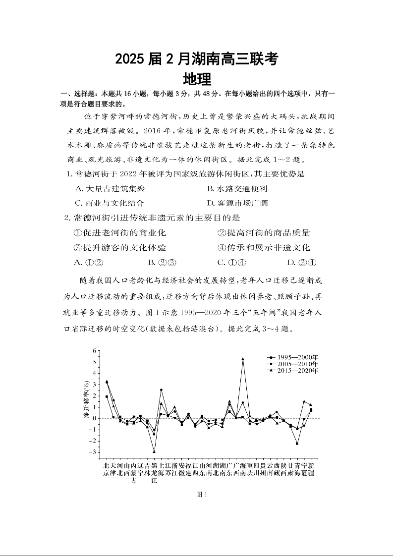 湖南省部分高中2024-2025学年下学期2月高三开学联考地理
