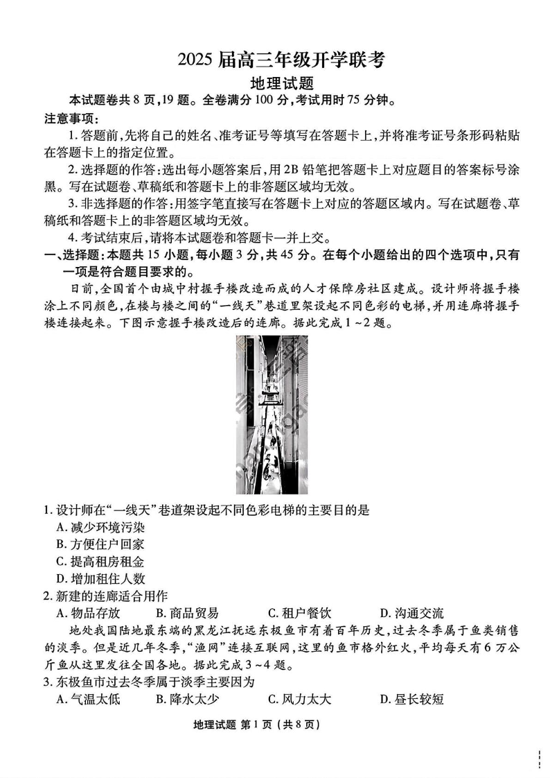 山西省区域高中2024-2025学年下学期2月高三开学联考地理+答案