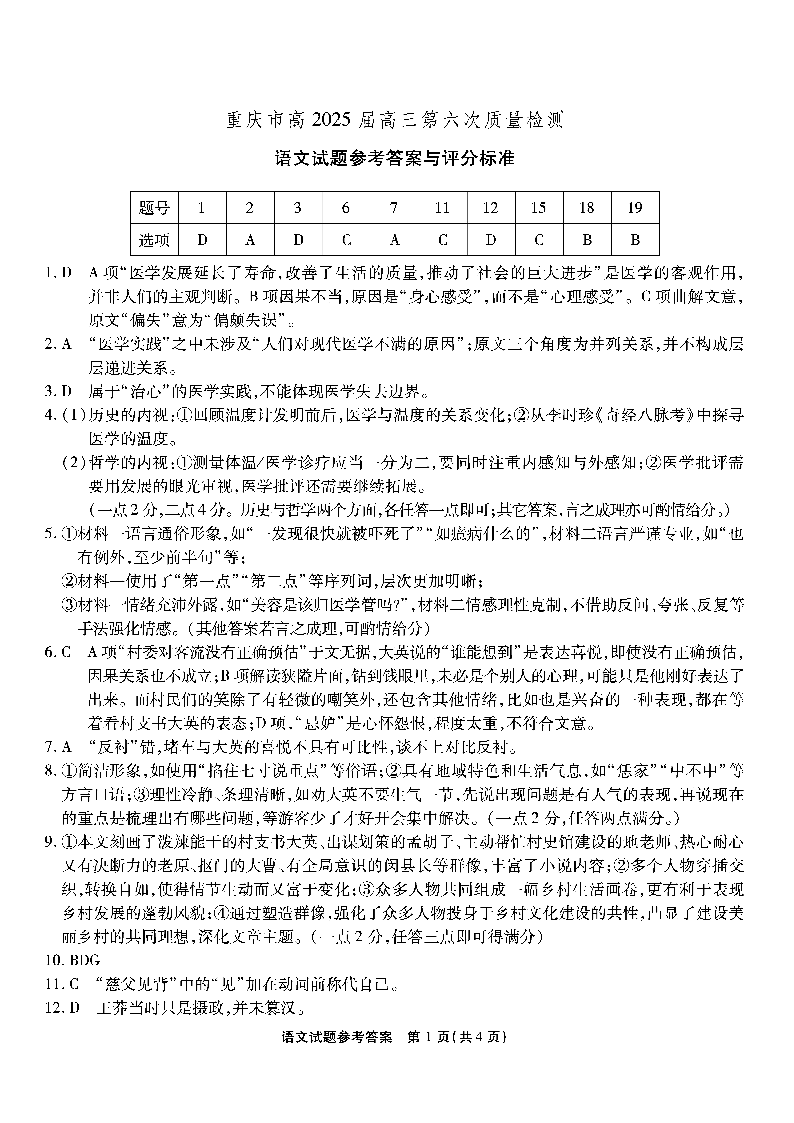重庆市南开中学2024-2025学年高三第六次质量检测语文答案