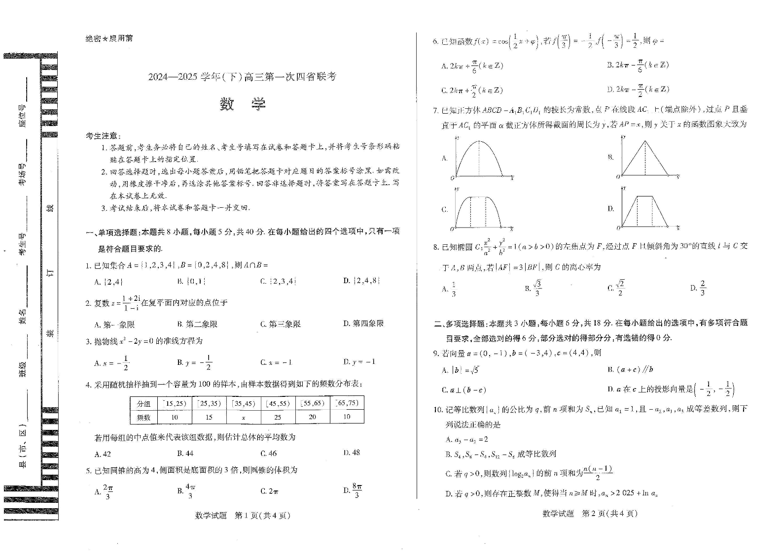 陕晋青宁四省部分高中2024-2025学年下学期2月高联考数学