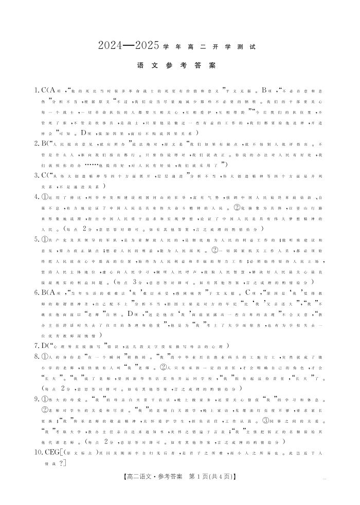 河南省区域高中2024-2025学年下学期2月高二开学考试语文答案