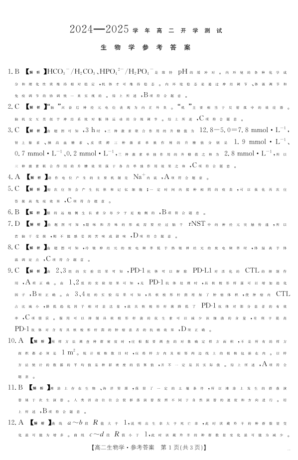 河南省区域高中2024-2025学年下学期2月高二开学考试生物学答案
