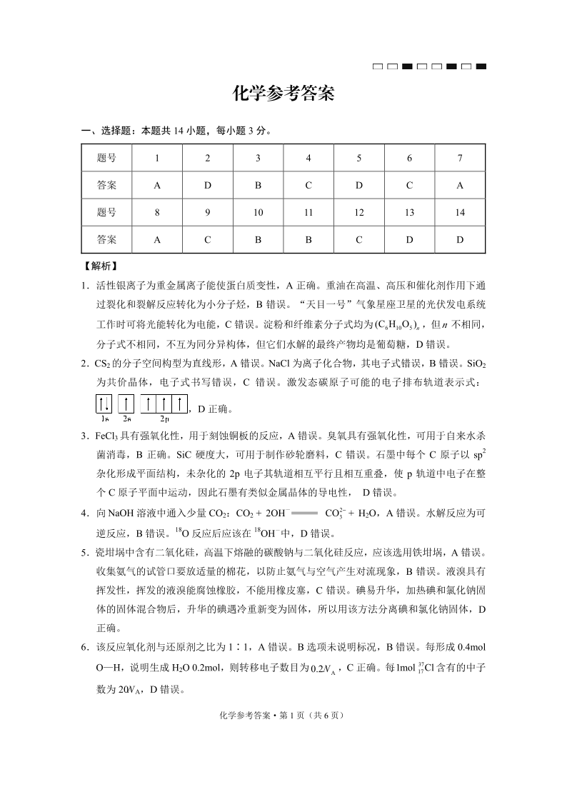 云南省师大学附中2024-2025学年下学期高三开学考试化学答案