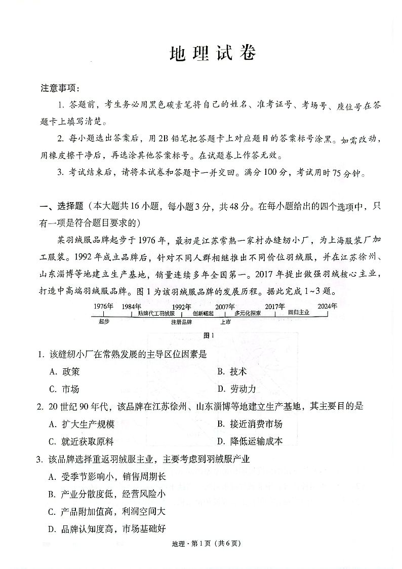 云南省师大学附中2024-2025学年下学期高三开学考试地理