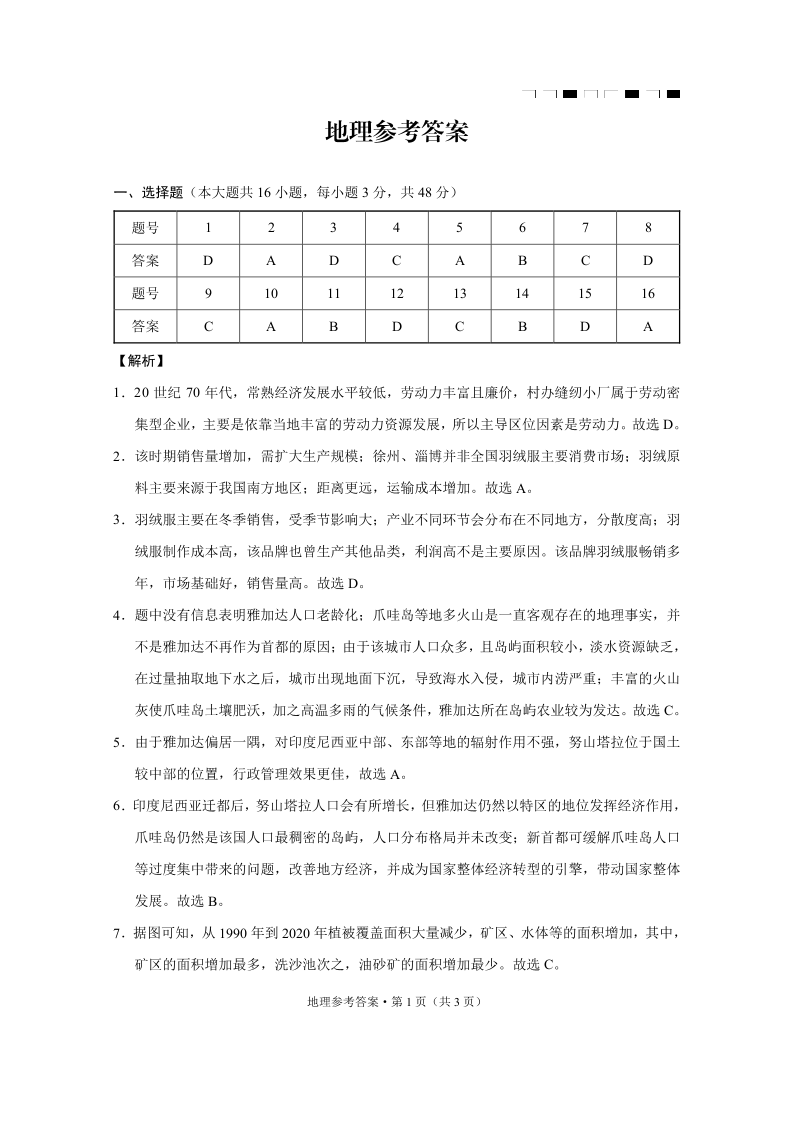 云南省师大学附中2024-2025学年下学期高三开学考试地理答案