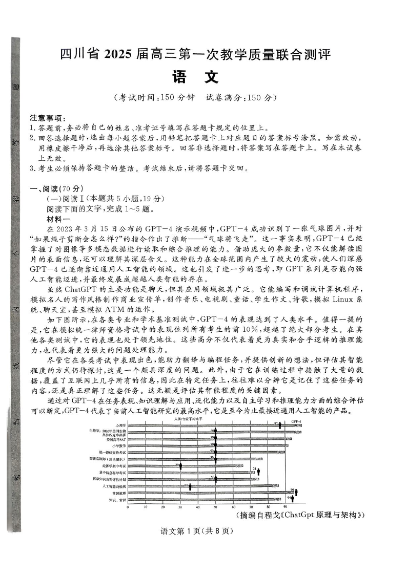 四川省2024-2025学年下学期2月高三第一次教学质量联合测评语文+答案