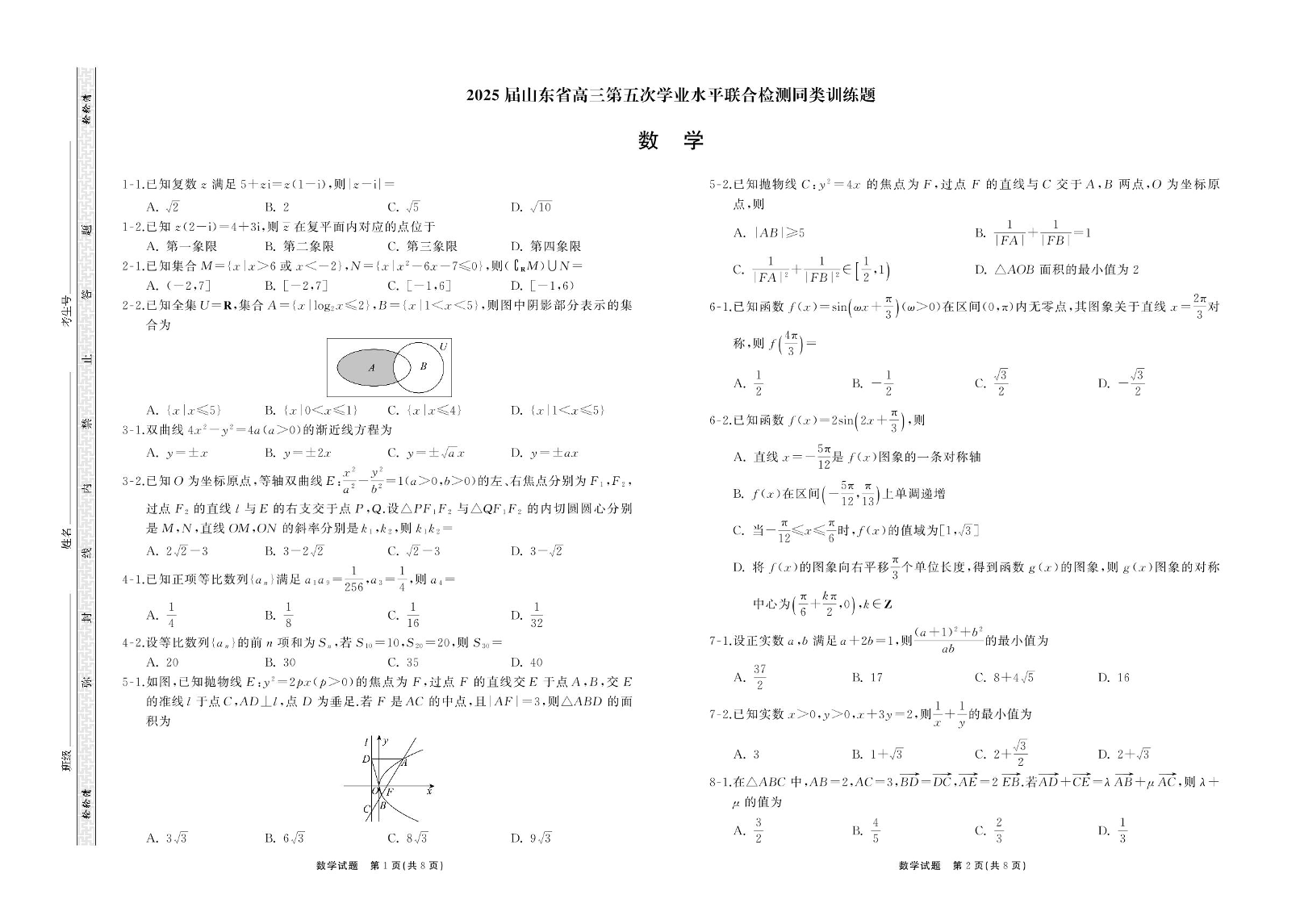 山东省齐鲁名校联考2024-2025学年下学期高三联合检测(五)数学