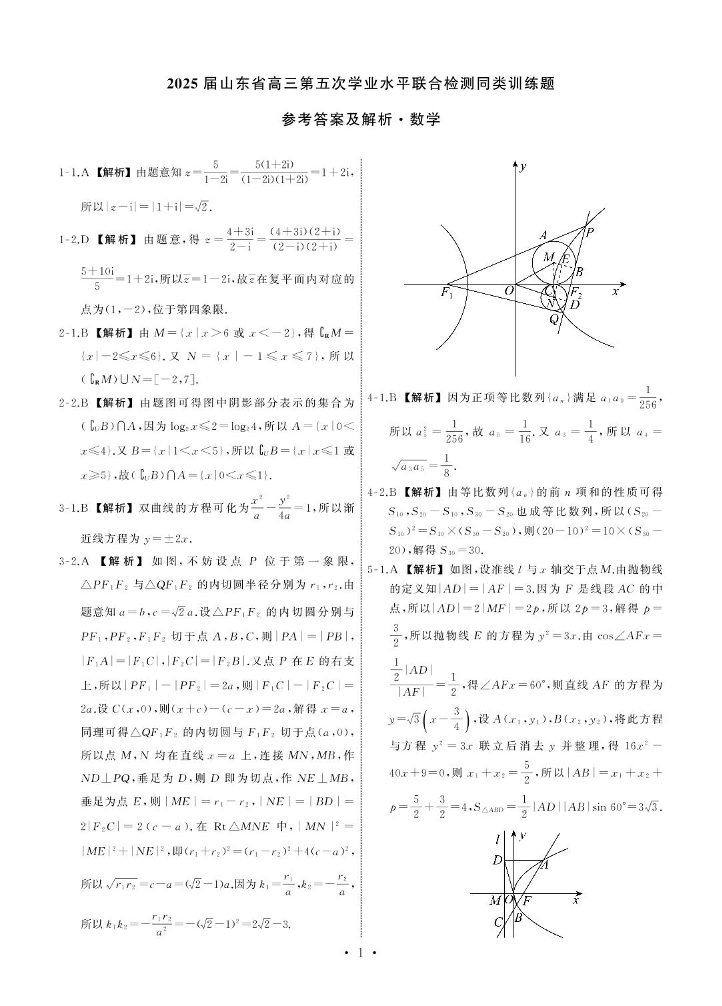 山东省齐鲁名校联考2024-2025学年下学期高三联合检测(五)数学答案