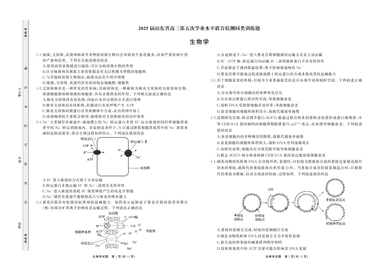 山东省齐鲁名校联考2024-2025学年下学期高三联合检测(五)生物