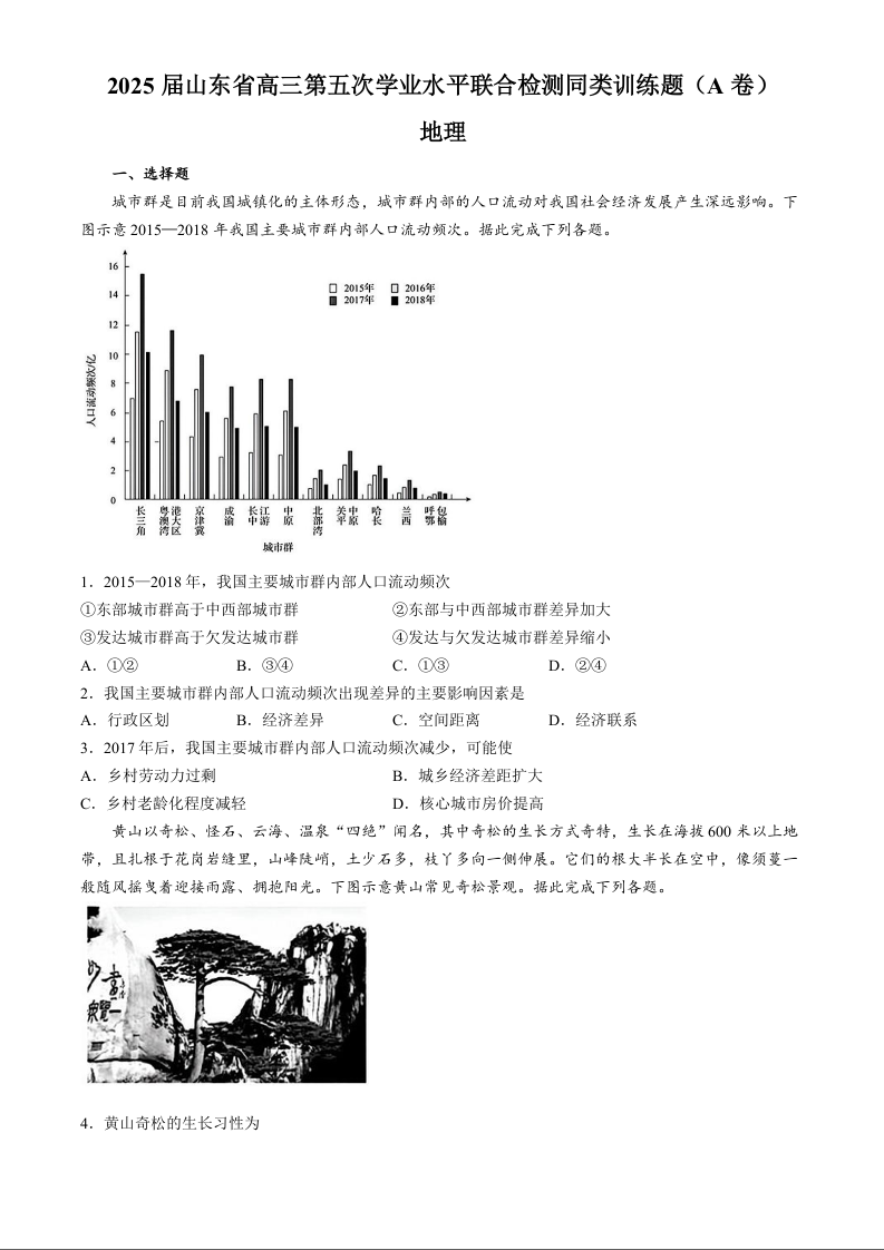 山东省齐鲁名校联考2024-2025学年下学期高三联合检测(五)地理A+答案