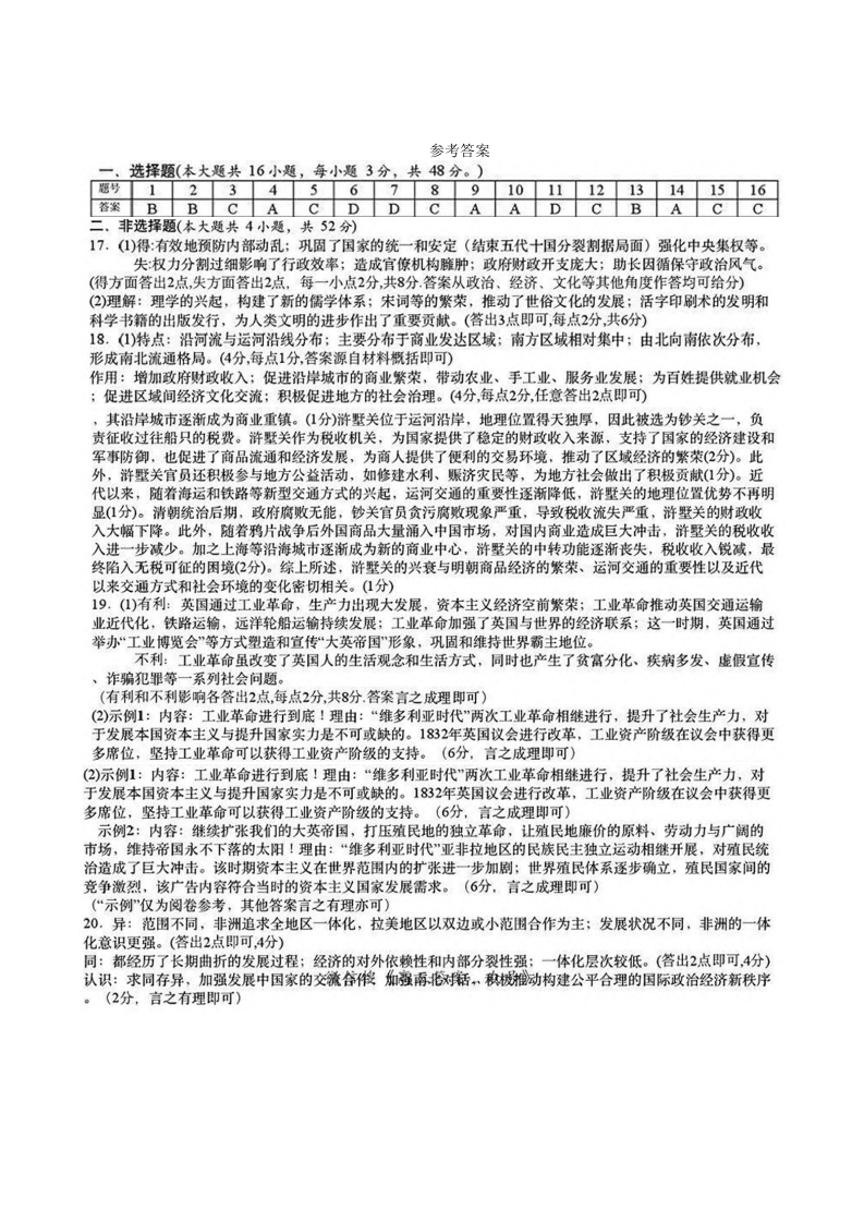 湖南省2024-2025学年下学期高三一轮复习收官联考历史答案