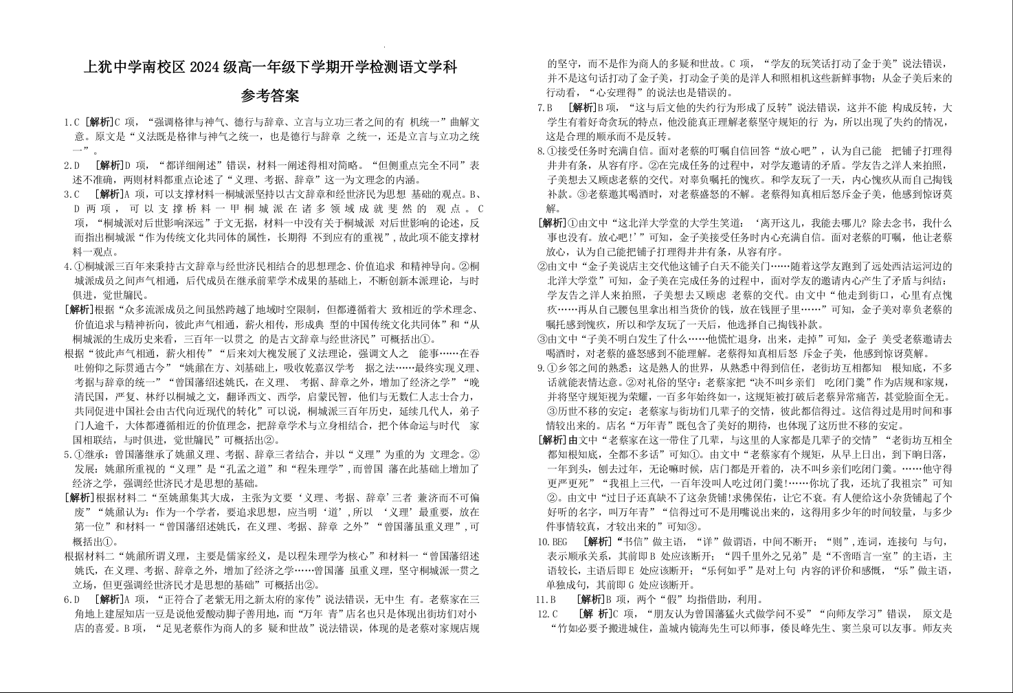 江西省赣州市上犹中学2024-2025学年高一下学期开学考试语文答案