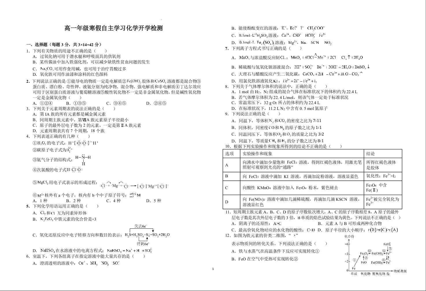 江西省赣州市上犹中学2024-2025学年高一下学期开学考试化学+答案