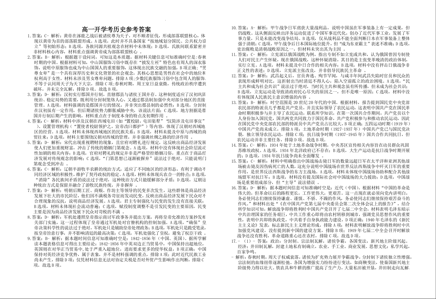 江西省赣州市上犹中学2024-2025学年高一下学期开学考试历史答案