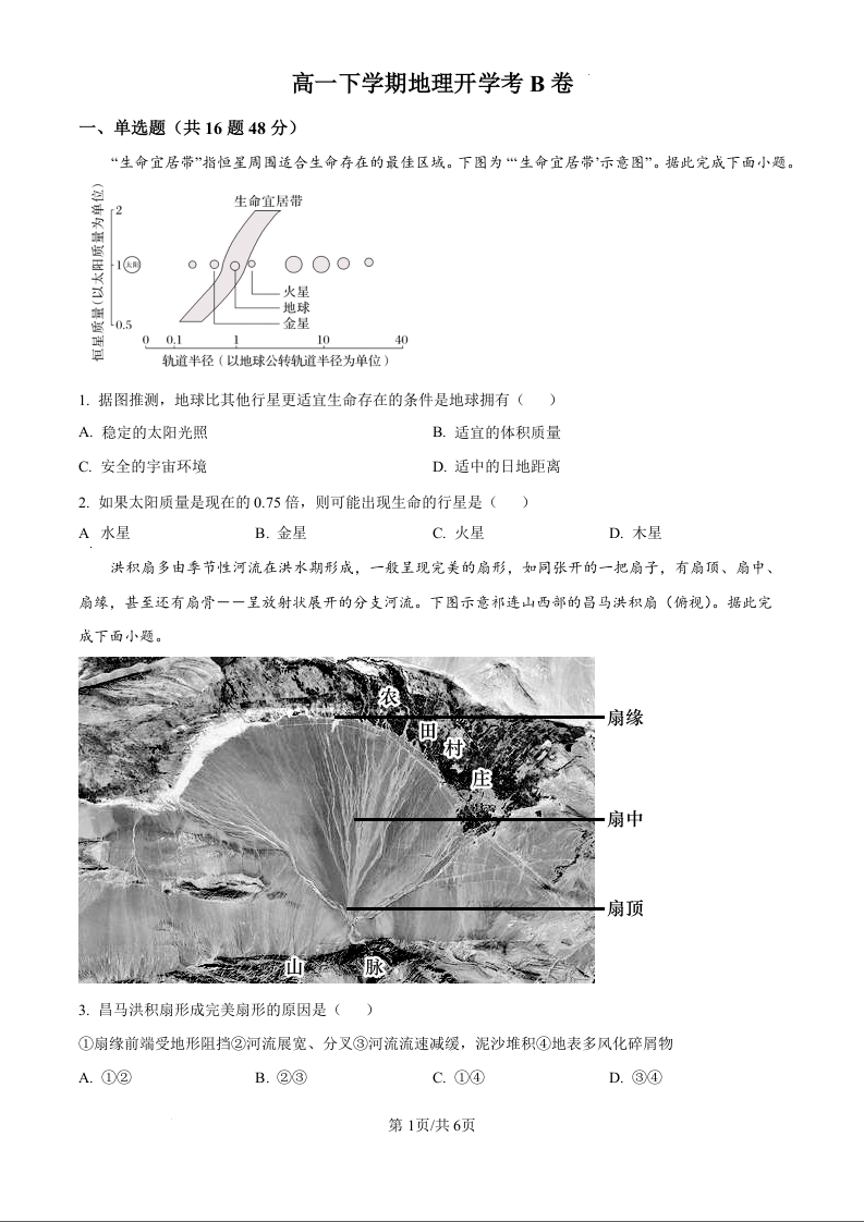 江西省赣州市上犹中学2024-2025学年高一下学期开学考试地理(原卷版)