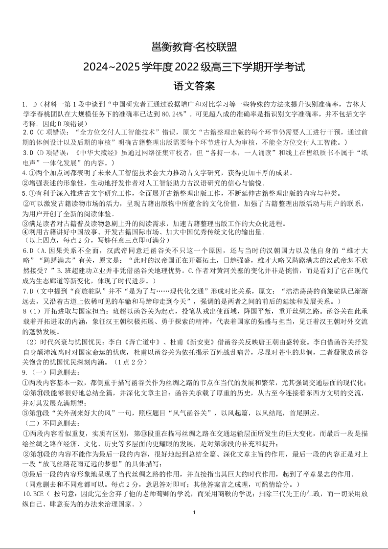 广西省邕衡教育·名校联盟2024-2025下学期高三开学考试语文答案
