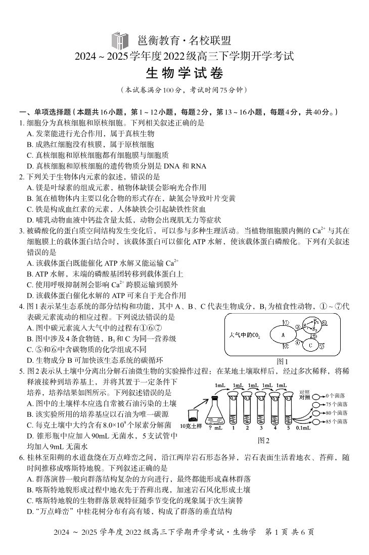 广西省邕衡教育·名校联盟2024-2025下学期高三开学考试生物