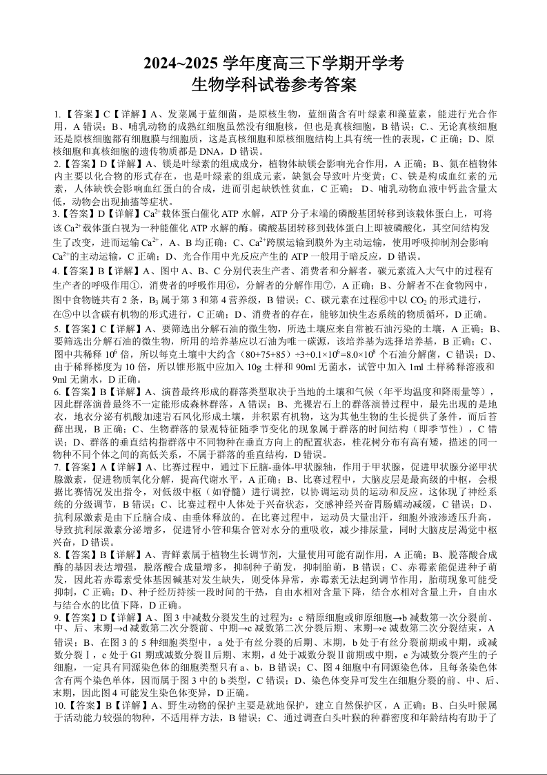 广西省邕衡教育·名校联盟2024-2025下学期高三开学考试生物答案
