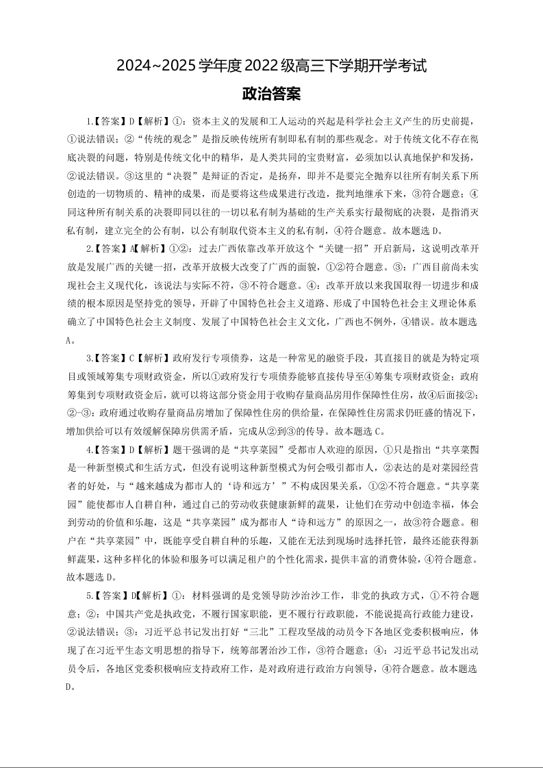 广西省邕衡教育·名校联盟2024-2025下学期高三开学考试政治答案