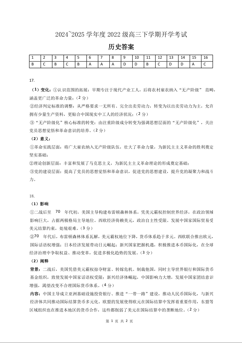 广西省邕衡教育·名校联盟2024-2025学年下学期高三开学考试历史答案