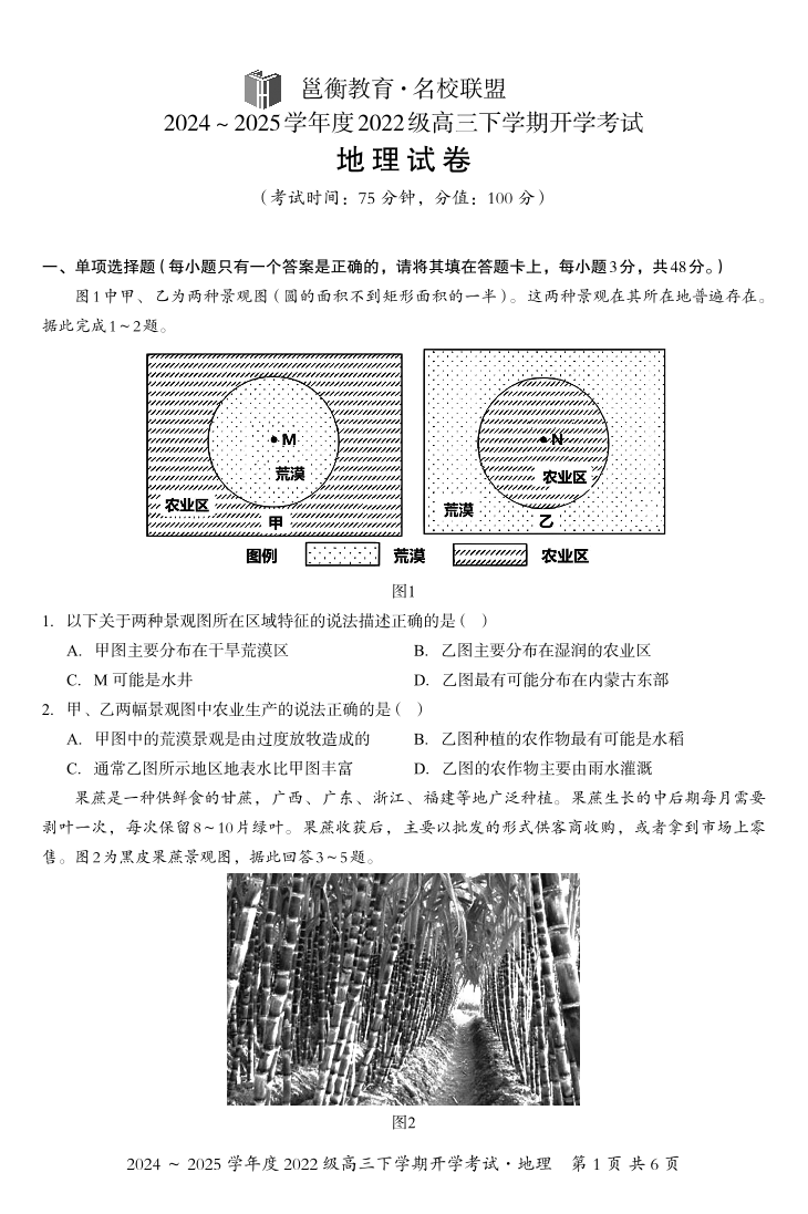 广西省邕衡教育·名校联盟2024-2025下学期高三开学考试地理