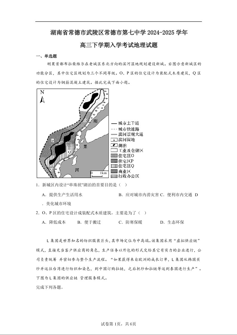 湖南省常德市第七中学2024-2025学年下学期高三开学考试地理+答案