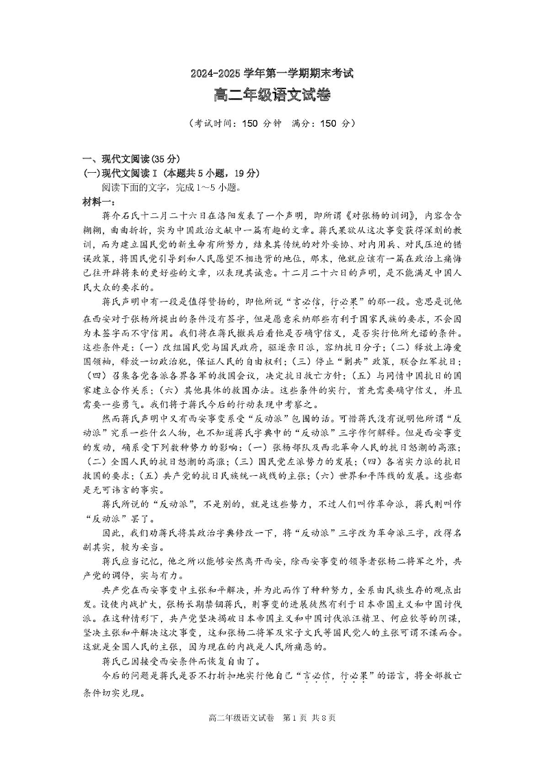 安徽省合肥市六校联盟2024-2025学年上学期1月高二期末考试语文