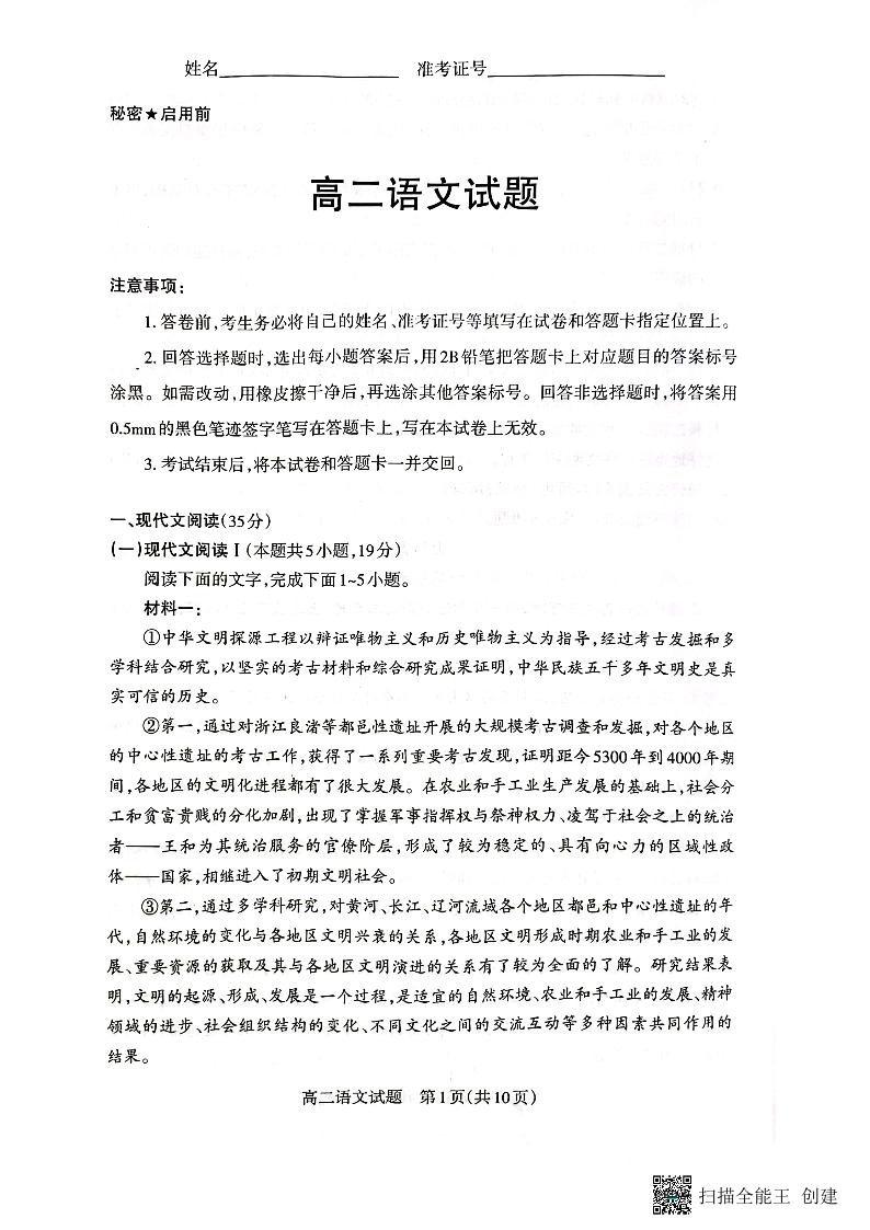 山西省朔州市怀仁市2023-2024学年高二上学期1月期末考试语文
