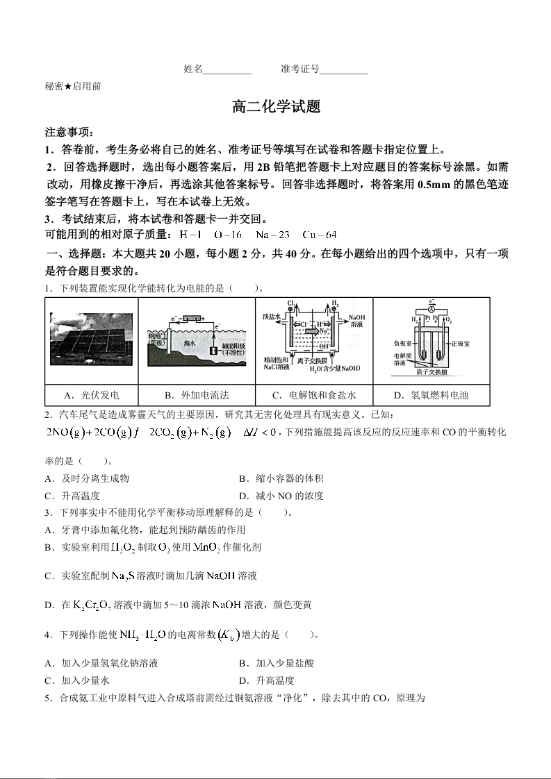 山西省朔州市怀仁市2023-2024学年高二上学期1月期末考试化学