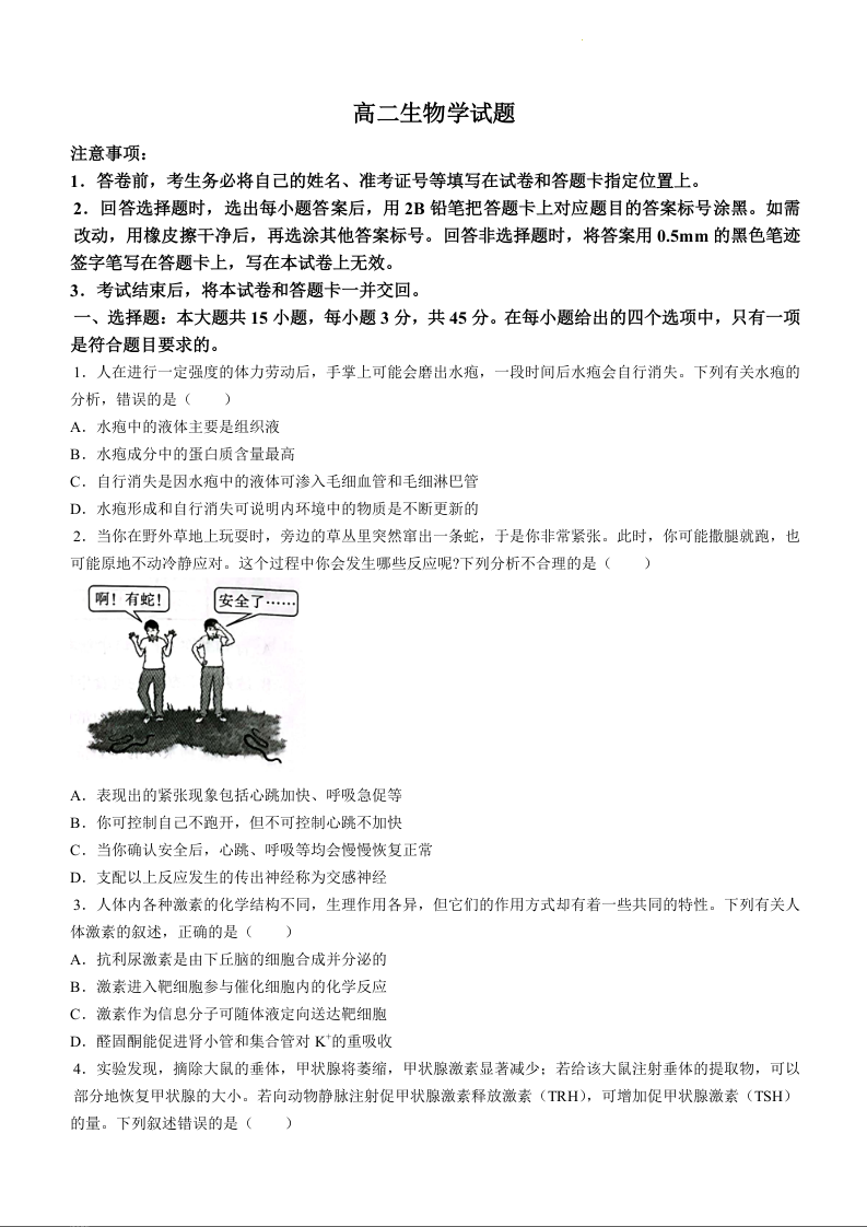 山西省朔州市怀仁市2023-2024学年高二上学期1月期末考试生物