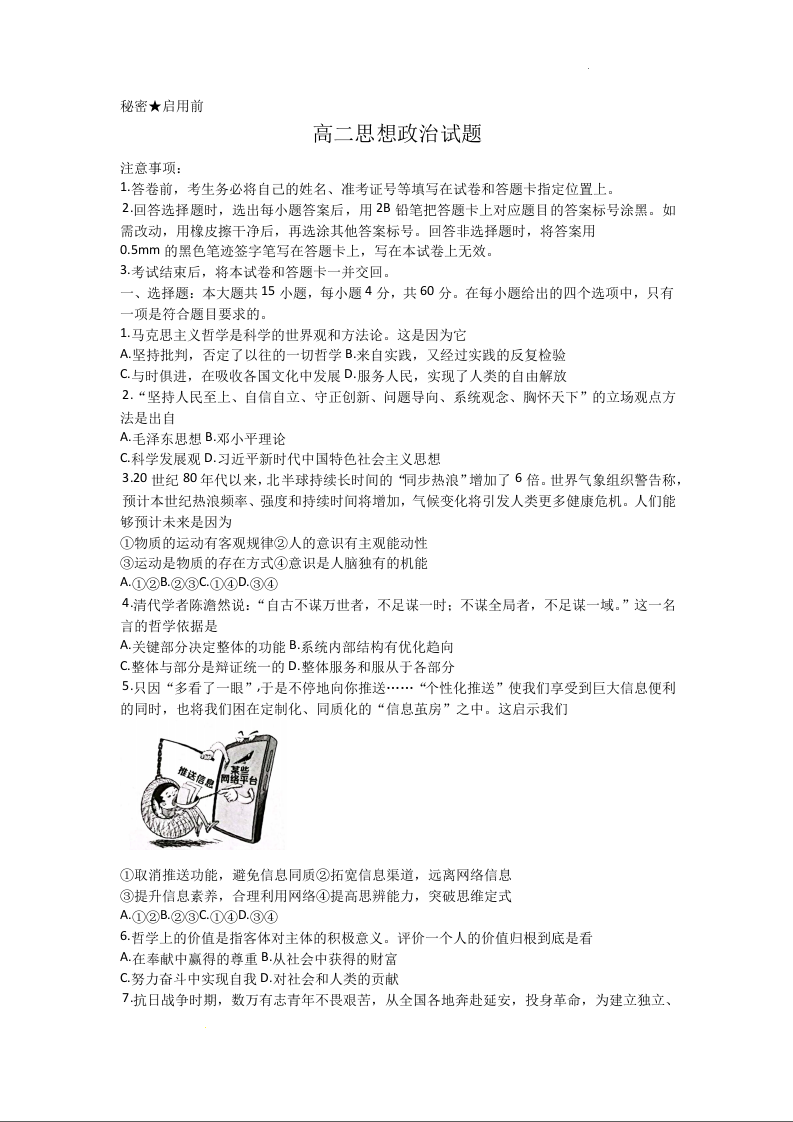 山西省朔州市怀仁市2023-2024学年高二上学期1月期末考试政治