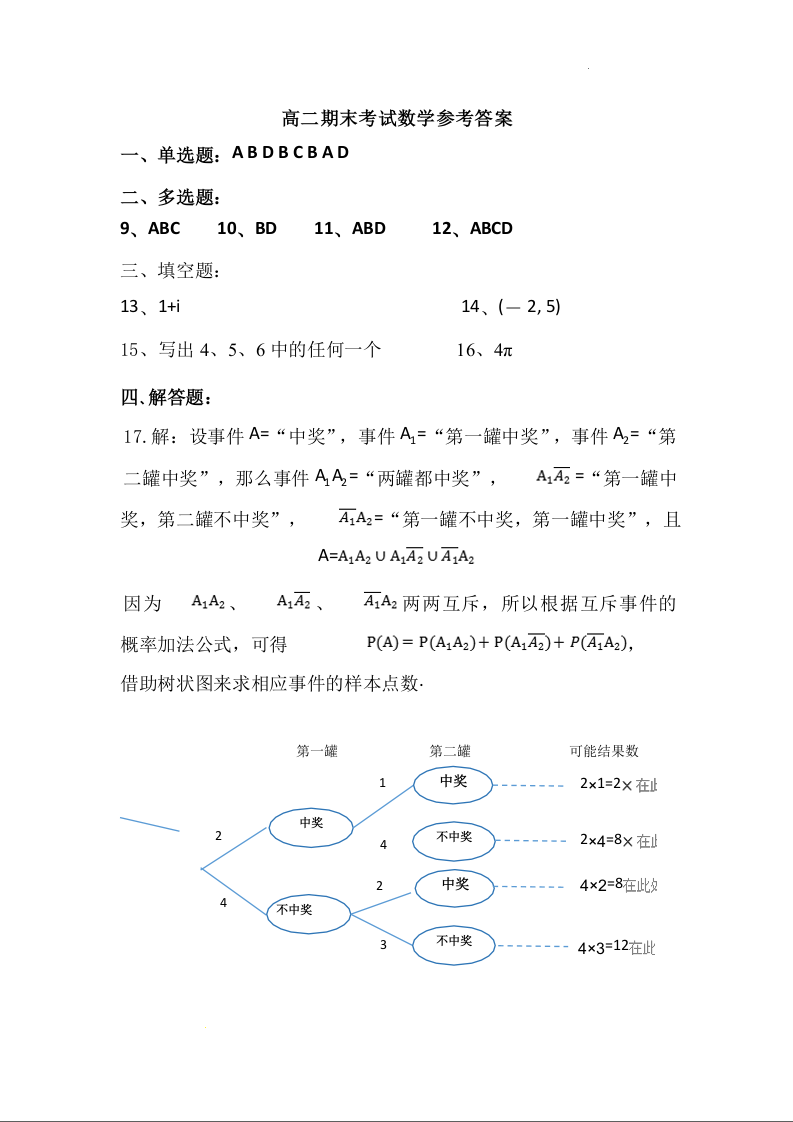 陕西省安康市2023-2024学年高二上学期期末考试数学答案