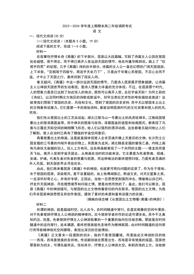 四川省成都市2023-2024学年高二上学期期末调研考试语文+答案