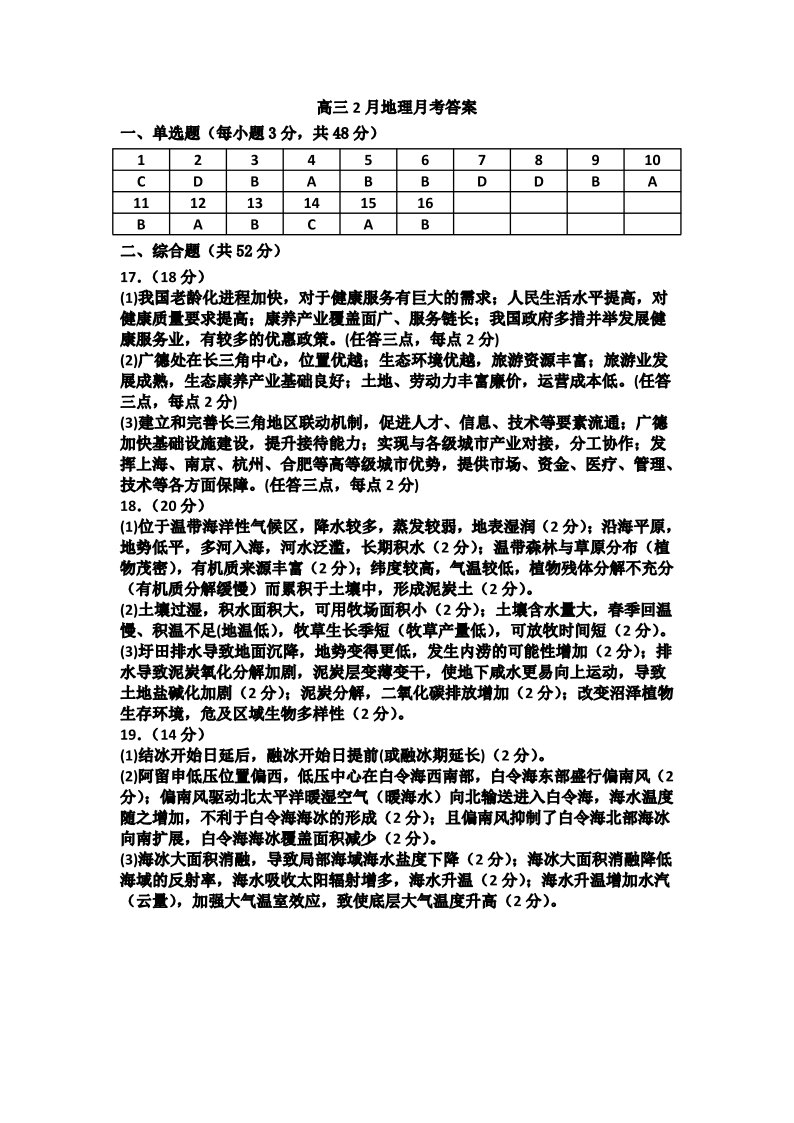江西省南昌市第十九中学2024-2025学年下学期2月高三月考测试地理答案