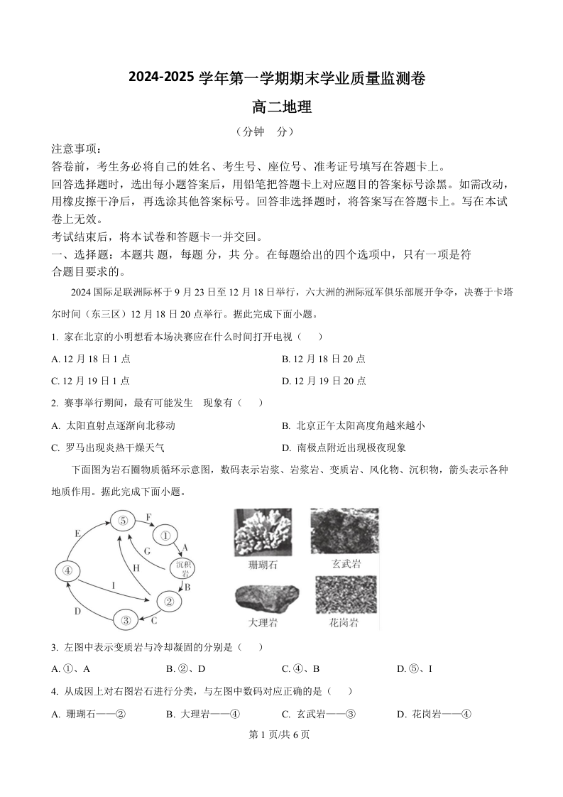 甘肃省区域高中2024-2025学年上学期高二期末考试地理+答案