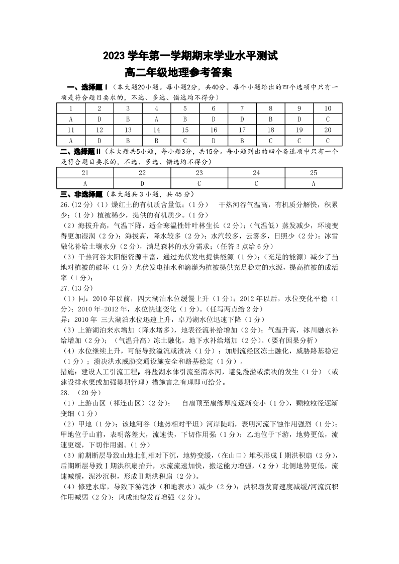 浙江省杭州市2023-2024学年高二上学期期末考试地理答案