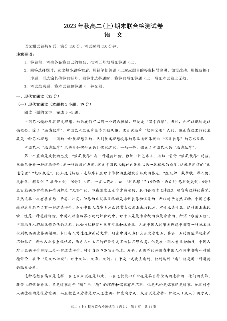 重庆市康德卷2023年秋高二(上)期末联合检测语文